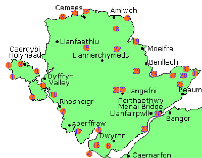 The map is for guidance only. for further information see theOrdnance Survey 1:500,000 Landranger map of Anglesey, sheet 114.Map grid references for all the sites on this leaflet.