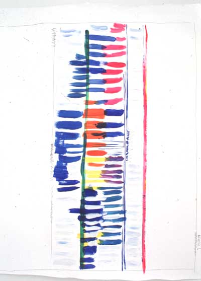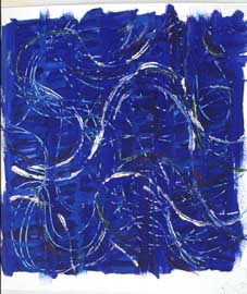 Georgina Rambton is a respected textile designer. Her work has sold to many leading international companies. Drawn to North Wales by the diverse coastline, she used a caravan studio on Anglesey for many years. Recently she bought a house and moved with her family to Red Wharf Bay. Away from the pressures of the city she has found more time for her work as a painter. Taking her inspiration from water and the sea she describes her resulting work as a dance, an ebb and flow of inner and outer tides. Her work is composed of sounds, smells, tastes, poetry, knowledge gleaned from literature and of course the visual stimulus of the sea. "If I were asked to describe what kind of paintings I make I would have to respond that I try to make tangible my poetic response to the great mother of life - the sea. When painting it is unusual for me to have a 'recipe' worked out beforehand - I work intuitively. That is not to say that my paintings do not relate to each other - I always work on a theme or a concept. The work gains its own impetus and follows on from where the last painting left off." Her latest paintings are a series based on reflections and energy. They are of an average scale, around 40 inches square, and are painted in acrylic with pencil on paper. |
