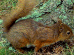Redsquirrels are endearing, with their auburn-red fur and whiteunderbellies, bushy brown to blond tails and large fluffy red eartufts. During the winter they are highly active as they busilyseek out nuts and fungi to bury in caches. In pine forests inScotland, red squirrels spend their days dashing around in thecanopy searching for and feeding on pine cones. In deciduouswoodlands and forests they bound along the forest floor in theirsearch for fallen nuts such as hazel nuts. Although red squirrelsforage alone, they roost in communal nests during the winter.